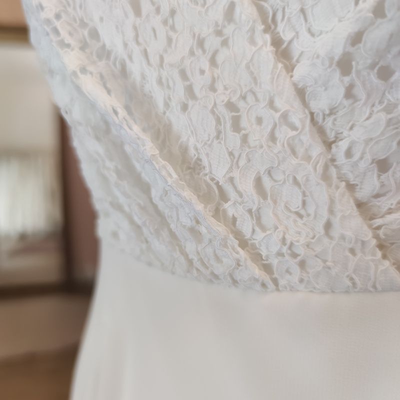 - Taille :34/36 – Taille poitrine : 85A – la mariée devra mesurer avec talons 1,78m maximum